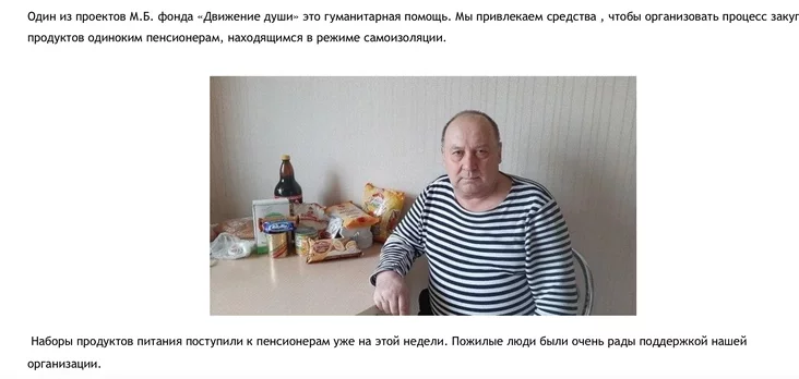 Тое ж тычыцца і дапамогі, якую «Рух душы» аказвае (аказваў?) пенсіянерам падчас пандэміі. Вось так выглядае старонка, прысвечаная гэтай дзейнасці.