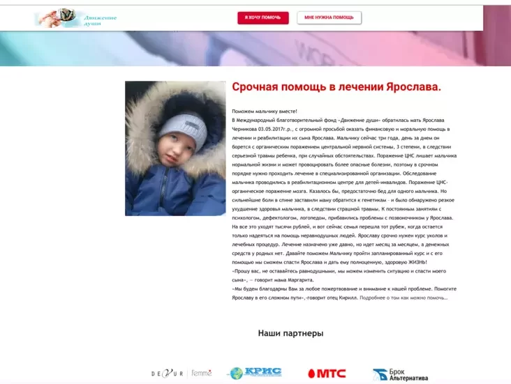 Перыядычна кампаніі, СМІ і нават дзяржустановы атрымліваюць лісты ад фонду «Рух душы» з заклікам дапамагчы хворым дзецям. Як правіла, на іх рэагуюць стандартна: райвыканкамы і газеты публікуюць інфармацыю ад фонду на сваіх сайтах, кампаніі арганізуюць нейкі мінімальны збор грошай. Але ў некаторых дзейнасць фонду выклікае справядлівыя пытанні. Такія ж пытанні ўзніклі і ў «Нашай Нівы». Мы паспрабавалі знайсці адказы на іх — і ўражанне засталося неадназначнае. Перыядычна кампаніі, СМІ і нават дзяржустановы атрымліваюць лісты ад фонду «Рух душы» з заклікам дапамагчы хворым дзецям. Як правіла, на іх рэагуюць стандартна: райвыканкамы і газеты публікуюць інфармацыю ад фонду на сваіх сайтах, кампаніі арганізуюць нейкі мінімальны збор грошай. Але ў некаторых дзейнасць фонду выклікае справядлівыя пытанні. Такія ж пытанні ўзніклі і ў «Нашай Нівы». Мы паспрабавалі знайсці адказы на іх — і ўражанне засталося неадназначнае.