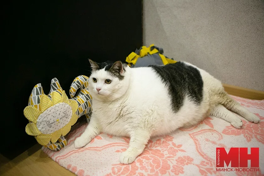 Кот трапіў да яе на ператрымку, але так і застаўся ў сям'і. Першае, што зрабілі новыя гаспадары, — узважылі гадаванца: на вагах была лічба 19,6. Гэта вельмі шмат для катоў, 9 кілаграмаў для іх верхняя норма.