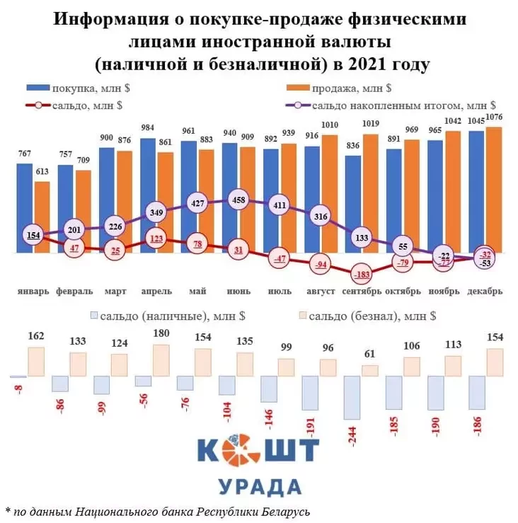 Нацбанк апублікаваў гадавую статыстыку куплі і продажу валюты. З яе вынікае недавер насельніцтва да дзяржаўных структур і няўпэўненасць у заўтрашнім дні. А што адбываецца, калі ў насельніцтва назапашваецца вялікая маса наяўнай валюты, разбіраецца тэлеграм-канал «Нашы грошы».