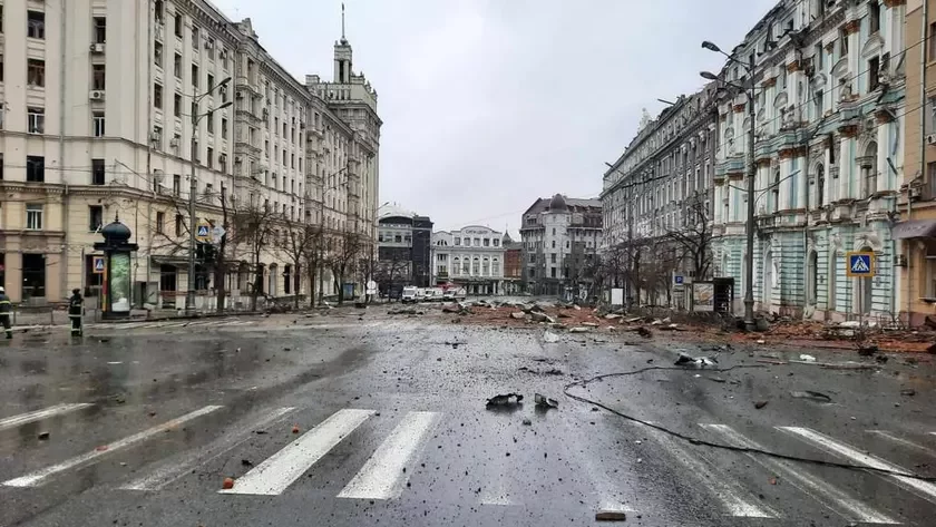Харкаў сёння зноў бамбілі. Снарад трапіў у будынак школы ў раёне Салтоўка.