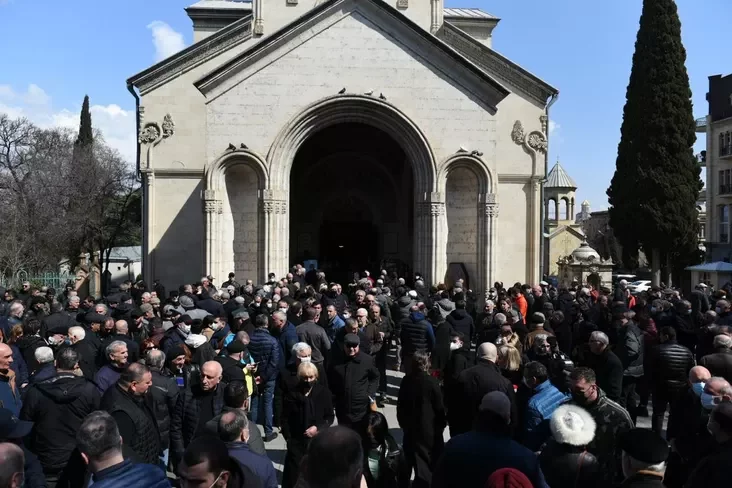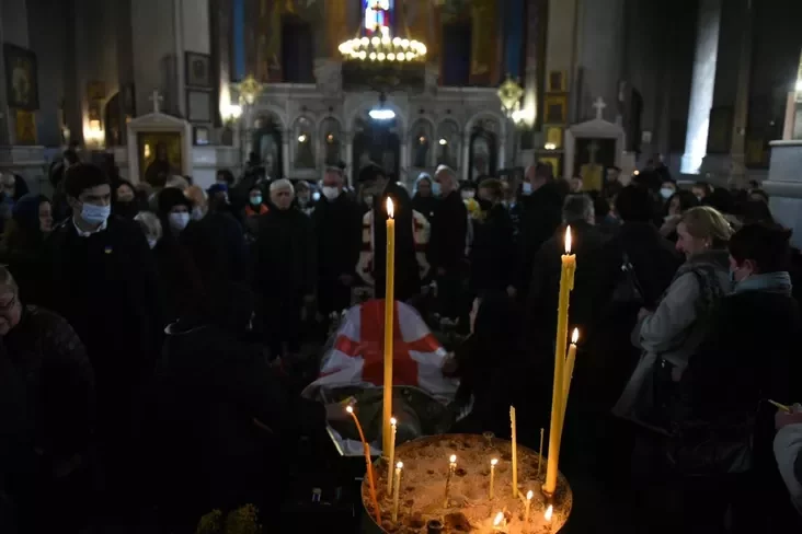 На развітанне з Берыяшвілі ў саборы Кашвеці ў цэнтры Тбілісі прыйшлі тысячы чалавек.