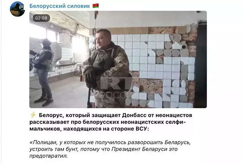 У тэлеграм-каналах, якія кантралююцца беларускімі сілавымі структурамі, тыражуецца інтэрв'ю безыменнага беларуса, які ваюе на расійскім баку — у фарміраваннях «ДНР». У відэа той крытыкуе беларусаў, якія ваююць за Украіну. «Наша Ніва» раскапала, хто гэты новы спікер беларускіх сілавікоў, і выявіла займальны момант.