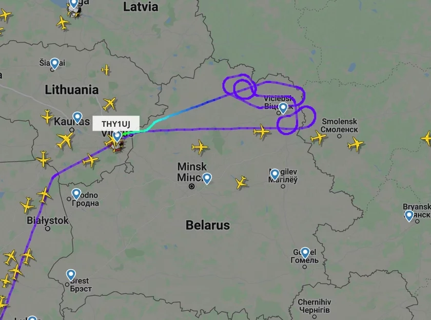 Рэйс Стамбул — Масква гадзіну кружляў над Віцебскай вобласцю, а пасля сеў у Вільні