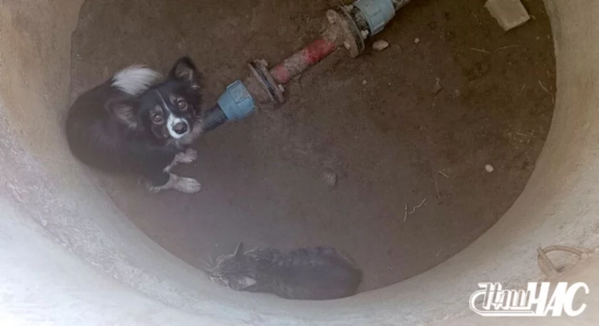 Тады маладыя людзі вырашылі абысці тэрыторыю і неўзабаве ўбачылі проста пасярод поля пусты тэхнічны калодзеж. Унутры быў не толькі сабака, але яшчэ і кацяня.