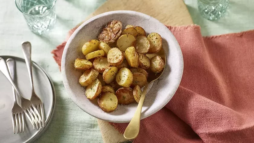 Каб згатаваць маладую бульбу з часнаком і размарынам, вам спатрэбіцца: