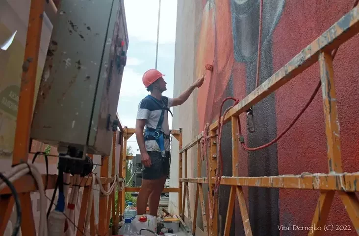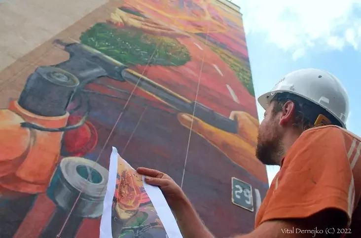 Мастакі стрыт-арту ствараюць у Гродне новы мурал — вышынёй 30 метраў