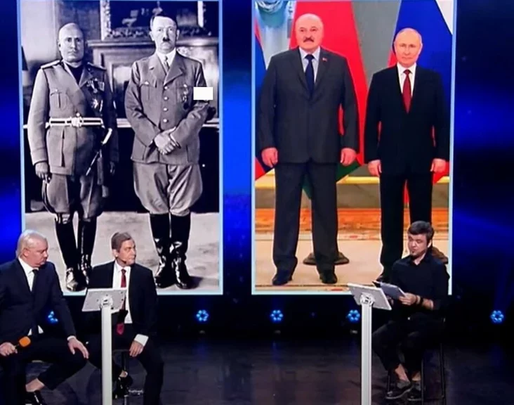 Наступнае пытанне. Трэба знайсці адрозненні паміж двума фота. На адным — Гітлер і Мусаліні. На другім — Пуцін і Лукашэнка.