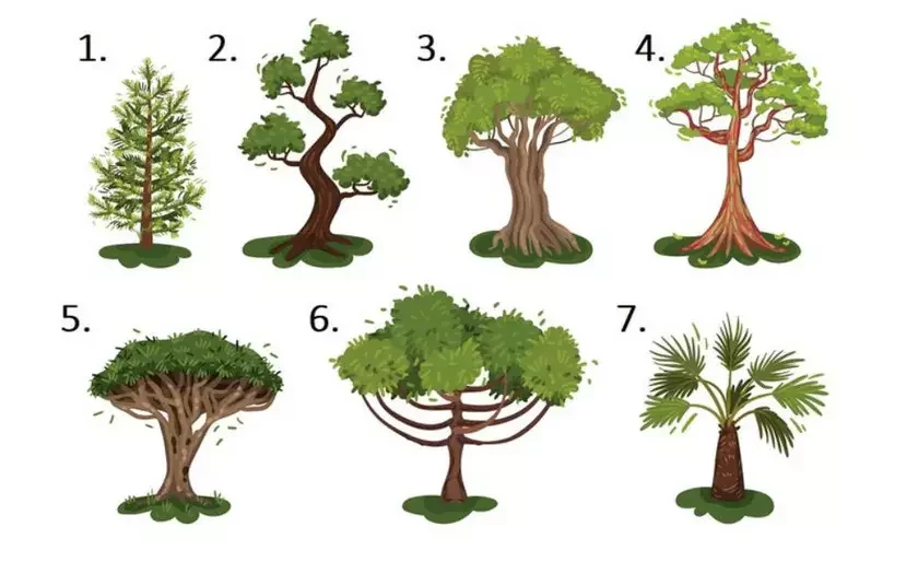 Паглядзіце на малюнак і выберыце адно з сямі дрэў. Выбірайце хутка, бо ў такіх тэстах ваша першае рашэнне звычайна лепш за ўсё расказвае пра тое, што адбываецца ўнутры вас. Любы выбар добры, калі ён ваш, расказвае onet.pl.