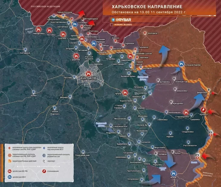 Мінабароны Расіі прызнала адступленне. Яна пазначае як падкантрольную сабе толькі зону па левым баку ракі Аскол, дзе вялікіх гарадоў няма. Гэта азначае, што ўкраінцы за тыдзень — іх наступ пачаўся 5 верасня — вызвалілі каля 8400 квадратных кіламетраў.