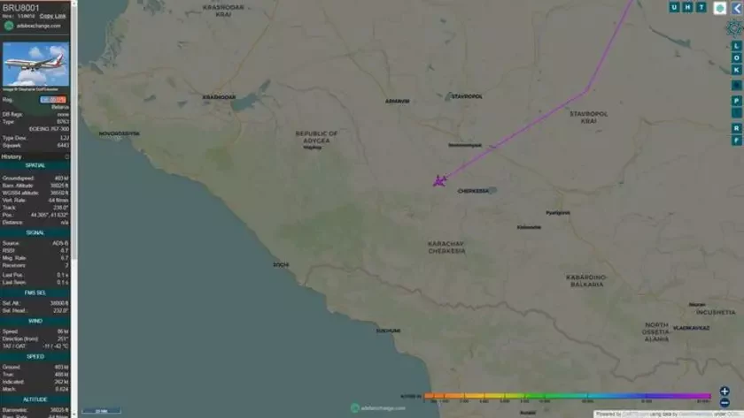 Boeing 767−32ker пад нумарам EW-001PB, на якім лётае Аляксандр Лукашэнка, вечарам 24 верасня прызямліўся ў Сочы, піша «Зеркала».