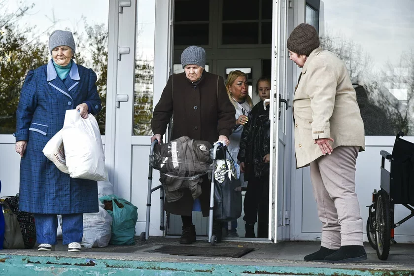 Менавіта небяспекай нанясення масіраванага ўдару па горадзе велізарнай групоўкай «нацыяналістаў» прадыктаваная, маўляў, эвакуацыя мірных жыхароў горада на левы бераг Дняпра. Прарасійскія ўлады пачалі вывозіць людзей з правабярэжжа Дняпра ў анексаванай Херсонскай вобласці яшчэ ў сярэдзіне кастрычніка. У пачатку лістапада Уладзімір Пуцін заявіў, што «цывільнае насельніцтва» Херсона трэба «прыбраць» з зоны баявых дзеянняў, і акупацыйныя ўлады абвясцілі «прымусовую эвакуацыю». 7 лістапада было абвешчана аб заканчэнні гэтай «эвакуацыі» — пры гэтым, як пісала «Медуза», некаторыя жыхары застаюцца ў горадзе і чакаюць прыходу ўкраінскай арміі.