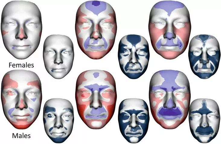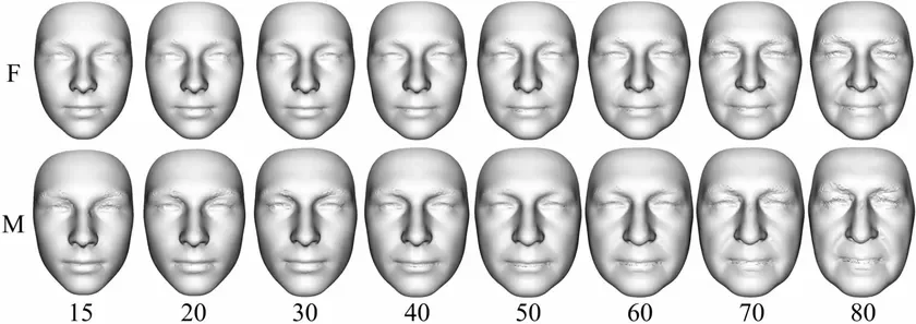 Даследчыкі адсочвалі, як стандартны твар змяняўся з цягам часу і ў якіх менавіта ўчастках. Высветлілася, што ў цэлым твары мужчын і жанчын змяняюцца аднолькава, але з некаторымі прыкметнымі выключэннямі. Твары мужчын, як правіла, няўхільна пашыраюцца на працягу ўсяго жыцця да 60 гадоў, пасля чаго яны пачынаюць змяншацца. Жаночыя твары, аднак, не змяняюцца з 20 да 30 гадоў — і толькі ў 30 пачынаюць пашырацца. Гэта абумоўлена, па словах навукоўцаў, значнымі зменамі ў вобласці шчок, калі тлушч назапашваецца на шчоках і скулах.
