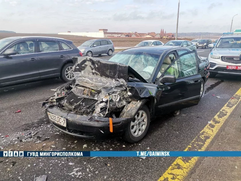 З-за незахавання бяспечнай дыстанцыі сутыкнуліся тры аўтамабілі: «Вольва», «Хёндэ» і «БМВ».