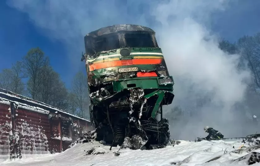 В Брянской области поезд пустили под откос. Похоже, сгорел белорусский тепловоз