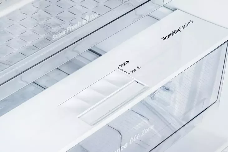Второй отдел — Hydro Balance Zone — предназначен для хранения фруктов и овощей. Он также оснащен функцией Humidity Control — механического контроля влажности.