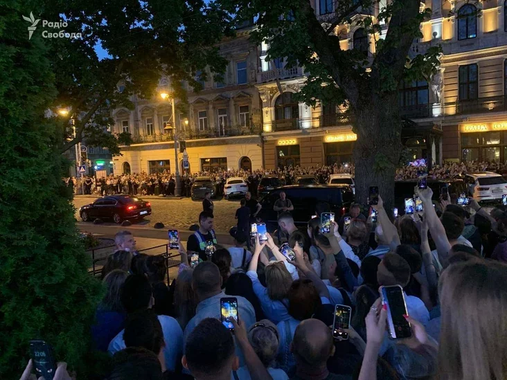 Жыхары Львова сустракалі прэзідэнта і байцоў воклічамі і авацыямі.