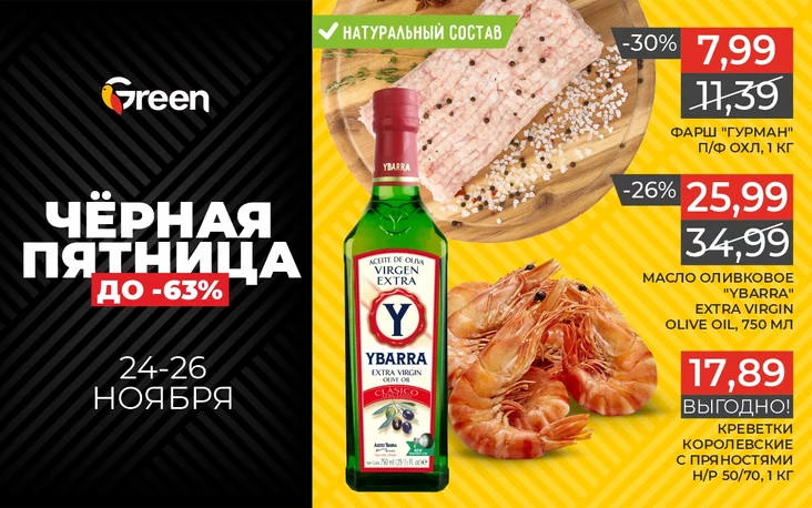Чаму б не адсвяткаваць пакупкі за святочным сталом? Да 26 лістапада акцыі будуць у сетцы крам Green — там абяцаюць зніжкі да 63%.