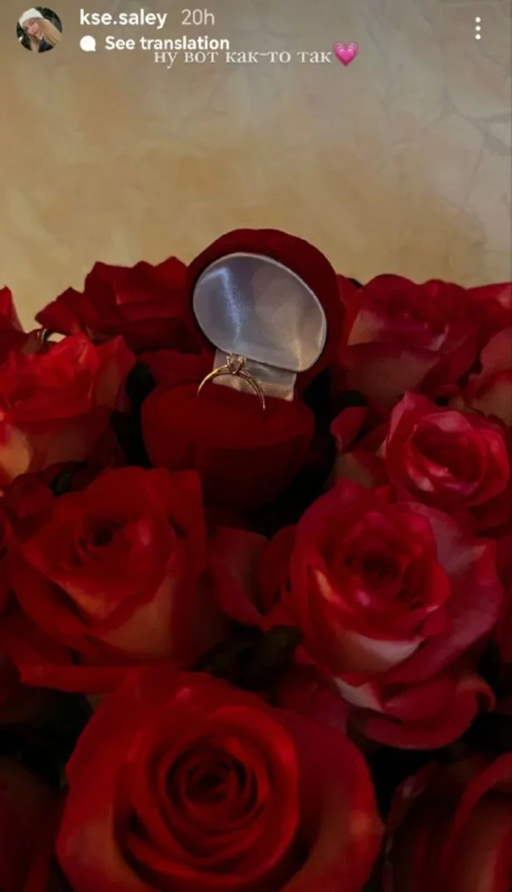 На Ксенію Салей уся краіна звярнула ўвагу напрыканцы мінулага году. Тады на традыцыйным навагоднім балі 20-гадовую прыгажуню пасадзілі побач з Лукашэнкам. Зараз яна апублікавала ў сторыс у інстаграме фота заручальнага пярсцёнка пасярод чырвоных ружаў з подпісам: «Ну вось неяк так».