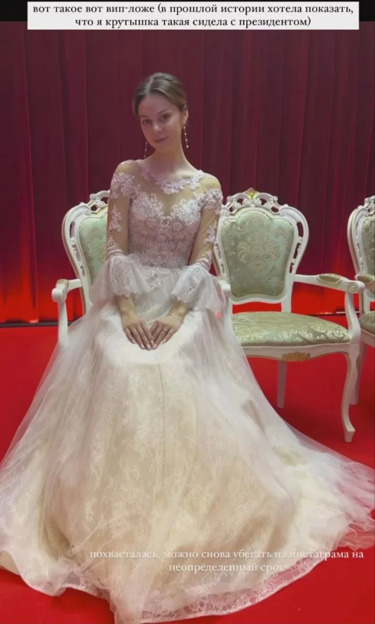 Дарэчы, Ксенія вельмі ганарылася той роляй, якую ёй давялося сыграць на праўладным свяце. У мінулым снежні студэнтка запосціла здымак, які пракаментавала так: «Вось такая вось віп-ложа (у мінулай гісторыі хацела паказаць, што я крутышка такая сядзела з прэзідэнтам). Пахвалілася, можна зноў уцякаць з інстаграма на нявызначаны тэрмін».