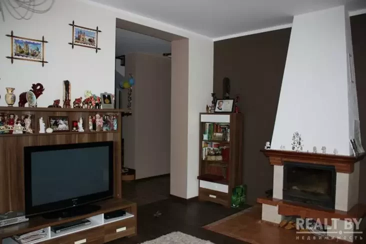 У аб'яве было пазначана, што катэдж двухузроўневы, ягоная плошча — 336 квадратных метраў. Адзін з шасці пакояў адведзены пад гасцёўню з камінам і канапавай зонай.