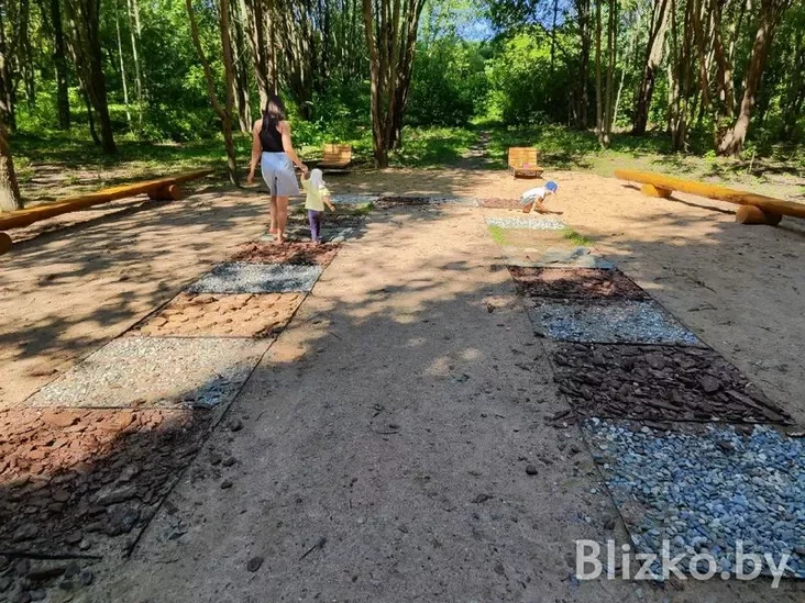 З цікавага яшчэ ёсць спецыяльная сцежка з шышкамі, карой, камянямі. На ёй можна пагуляць басанож і атрымаць кайф для ног.