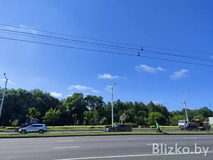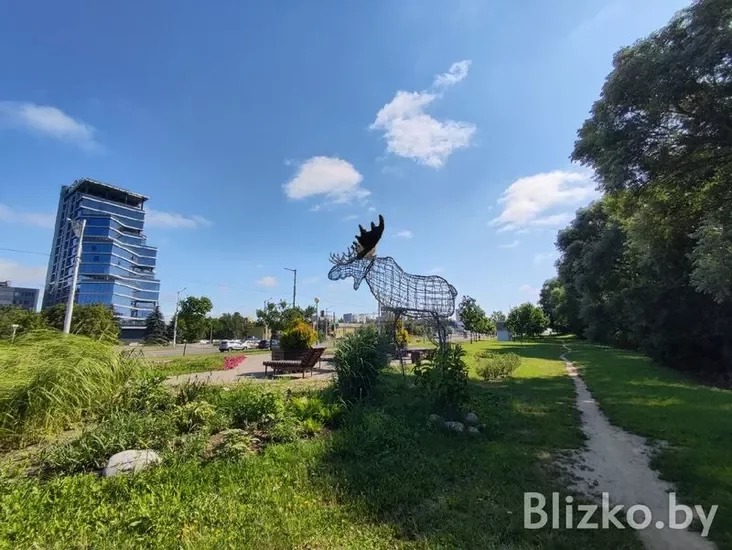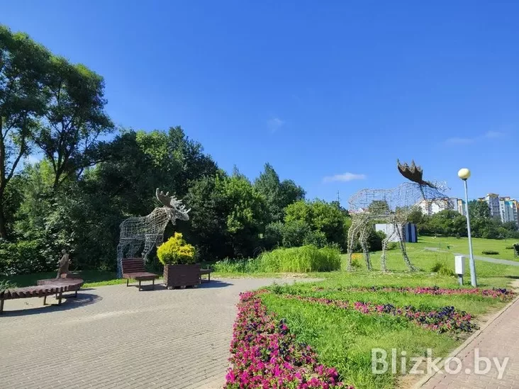А вось калі вы паедзеце грамадскім транспартам, то гэта паблізу станцыі метро «Спартыўная». Трэба ісці ў бок царквы Еўфрасінні Полацкай. З гэтага боку вас сустрэнуць велізарныя светлавыя скульптуры двух ласёў. Гэта будзе адваротны бок зоны адпачынку.
