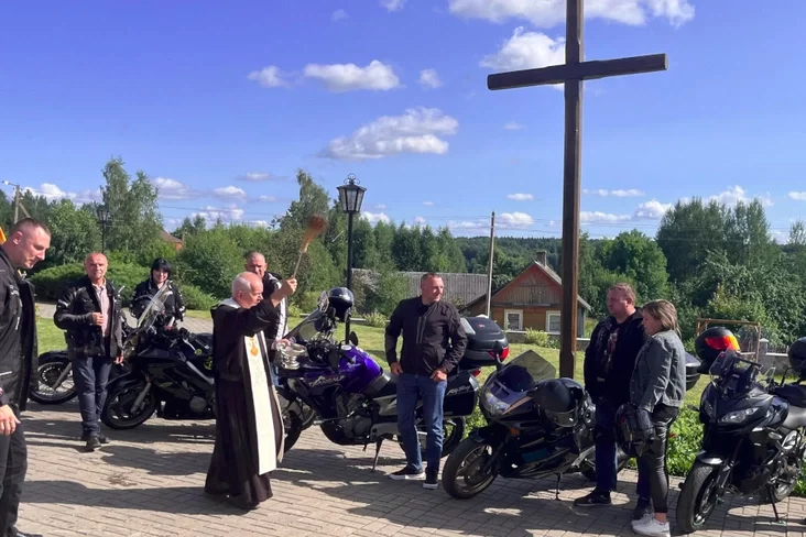 З розных куткоў Беларусі ў Гудагай прыбылі пілігрымы — у тым ліку байкеры з Астраўца. Яны атрымалі дабраслаўленне і памаліліся перад абразом Маці Божай.