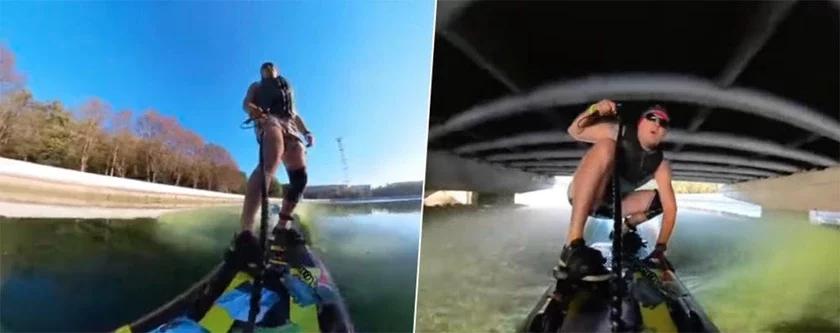 Ён рассякае па Свіслачы на электрадошцы, спрытна ныраючы пад пешаходныя масткі. Улічваючы, што звычайна самы «экстрэмальны» від транспарту ў цэнтры — гэта катамаран, відэа ўражвае, піша Onliner.by.