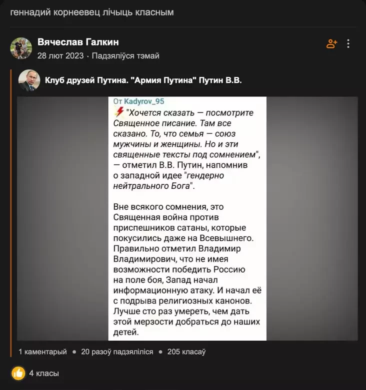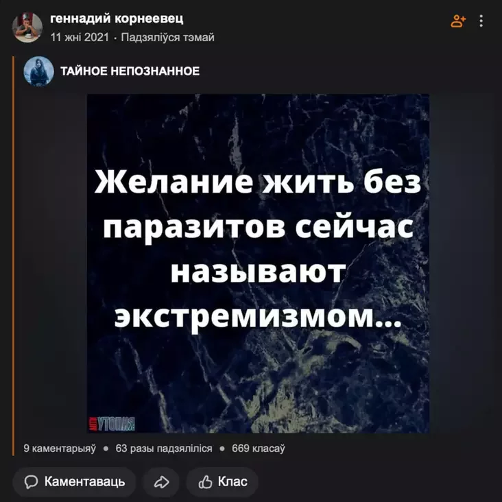 У 2020-м Генадзь Карнеявец падтрымаў рух за свабодныя выбары. Але пасля пачатку вайны рашуча выступіў за Расію. Цяпер яму пагражае да 6 гадоў калоніі за старыя рэпосты.