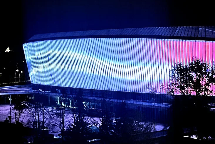 На Нацыянальным футбольным стадыёне выпрабавалі падсвятленне фасада ФОТАФАКТ