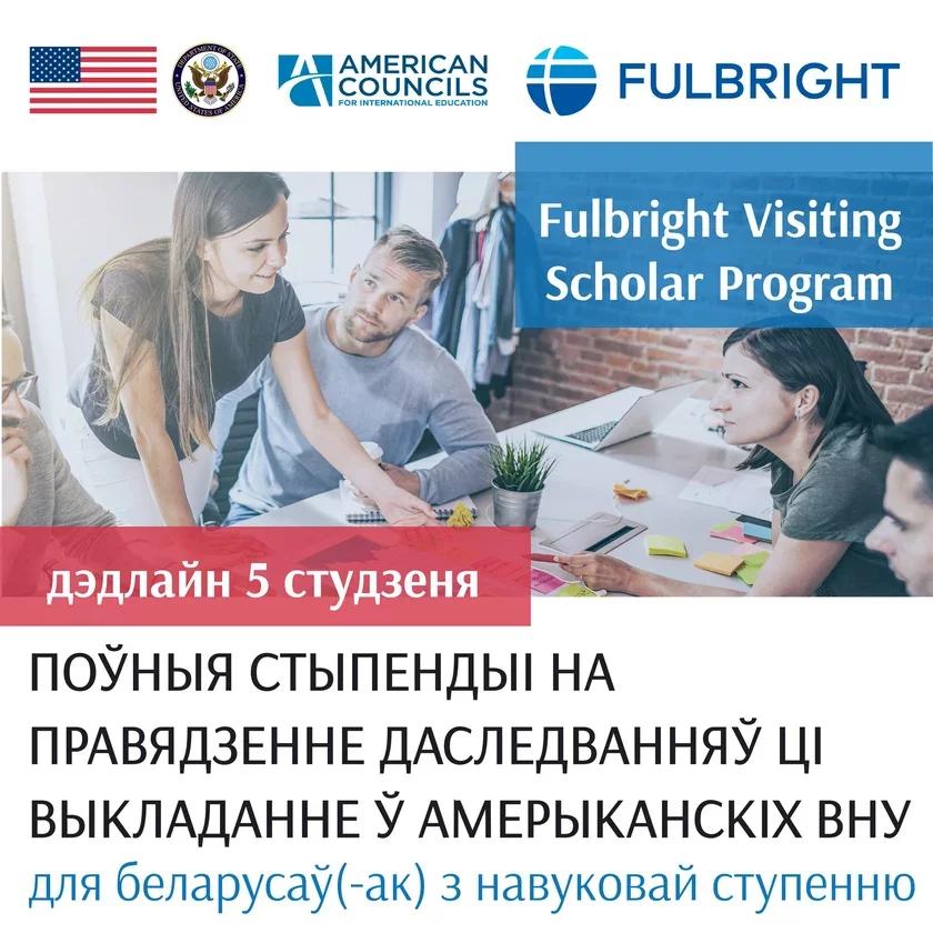 Fulbright Visiting Scholar Program прапануе поўныя стыпендыі на правядзенне навуковых даследаванняў і/ці выкладанне ў амерыканскіх універсітэтах на працягу 3-6 месяцаў. Праграма таксама аказвае візавую падтрымку для членаў сям'і.