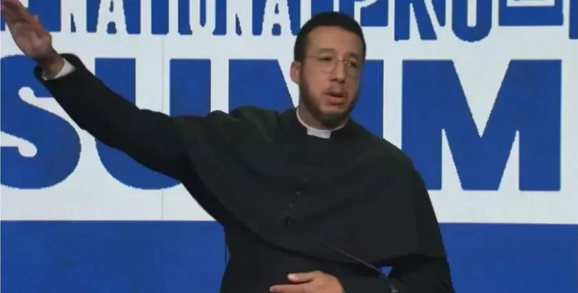 Жэстам, які карыстальнікі сацсетак інтэрпрэтавалі як «нацысцкае прывітанне», святар завяршыў сваю прамову на нацыянальным саміце за жыццё ў Вашынгтоне. Відэа выступу ён апублікаваў на сваёй старонцы ў сацсетцы X.
