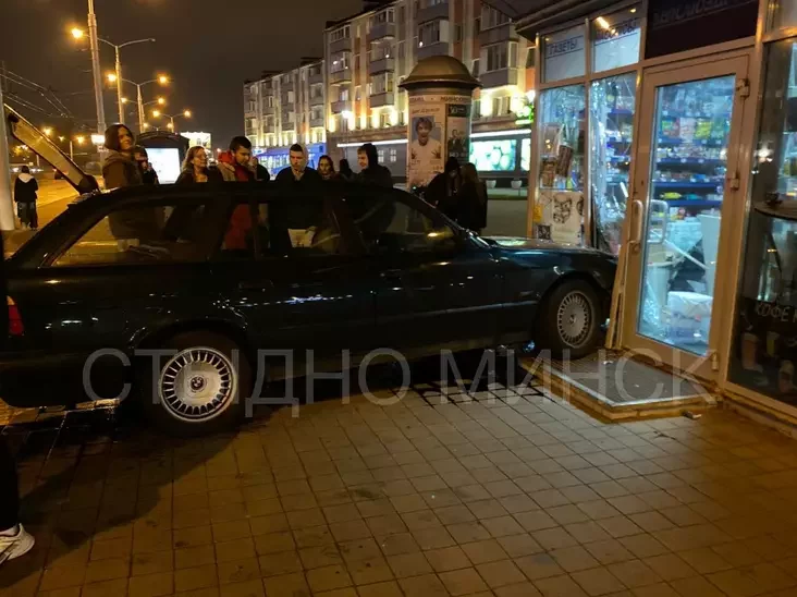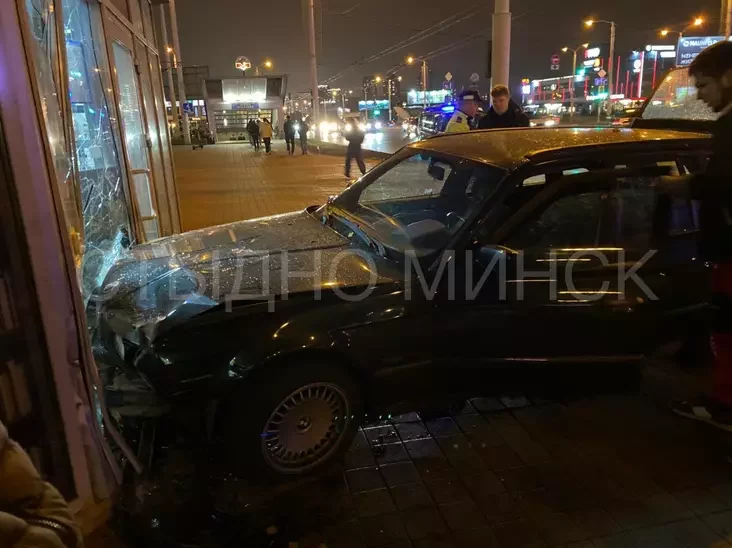 У Мінску на прыпынку каля станцыі метро «Міхалова» аўтамабіль BMW урэзаўся ў кіёск «Белсаюздруку».