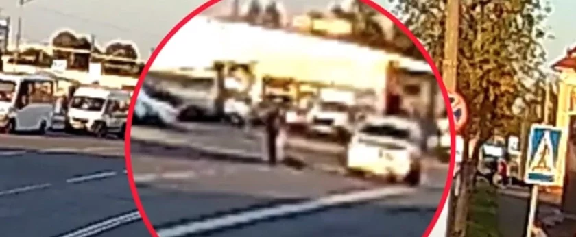 ДАІ апублікавала відэа здарэння: момант наезду не відаць, аднак, наколькі можна разгледзець, мужчына спрабаваў адцягнуць жанчыну пасля ДТЗ.