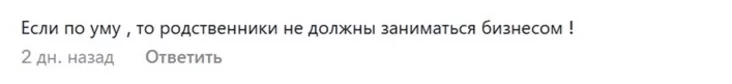 «Калі па-разумнаму, то сваякі не павінны займацца бізнэсам», — так мяркуе чалавек пра сітуацыю.