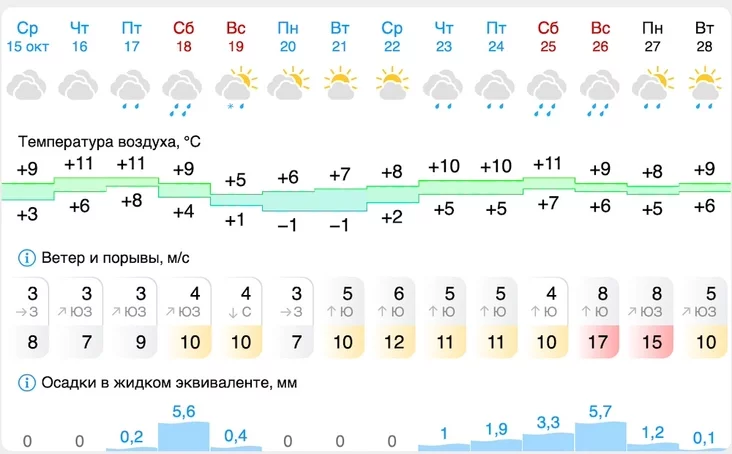 Дажджы, вецер і не больш за +14°С — надвор'е на самую сярэдзіну восені