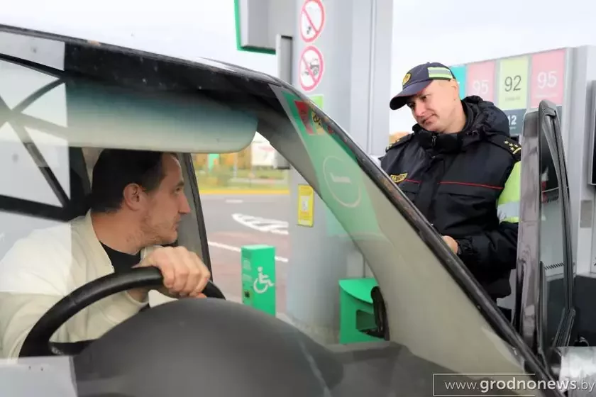 На адной з гродзенскі заправак, куды прыехаў рэйд, знайшоўся кіроўца, які пакінуў машыну ля калонкі і адправіўся па каву. Чэргі за ім не было, але інспектары пасля правялі прафілактычную гутарку. Высветлілася яшчэ, што ў мужчыны няма тэхагляду, хоць прадпісанне прайсці яго ён ужо атрымліваў.