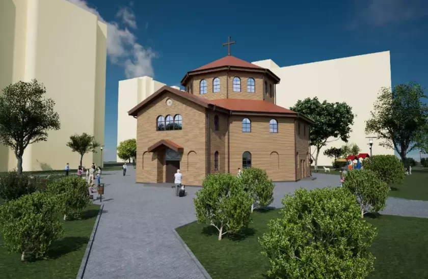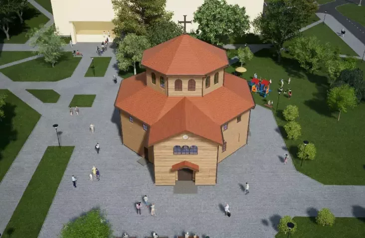 Новы храм плануюць узвесці на тэрыторыі невялікага сквера, густа засаджанага дрэвамі.