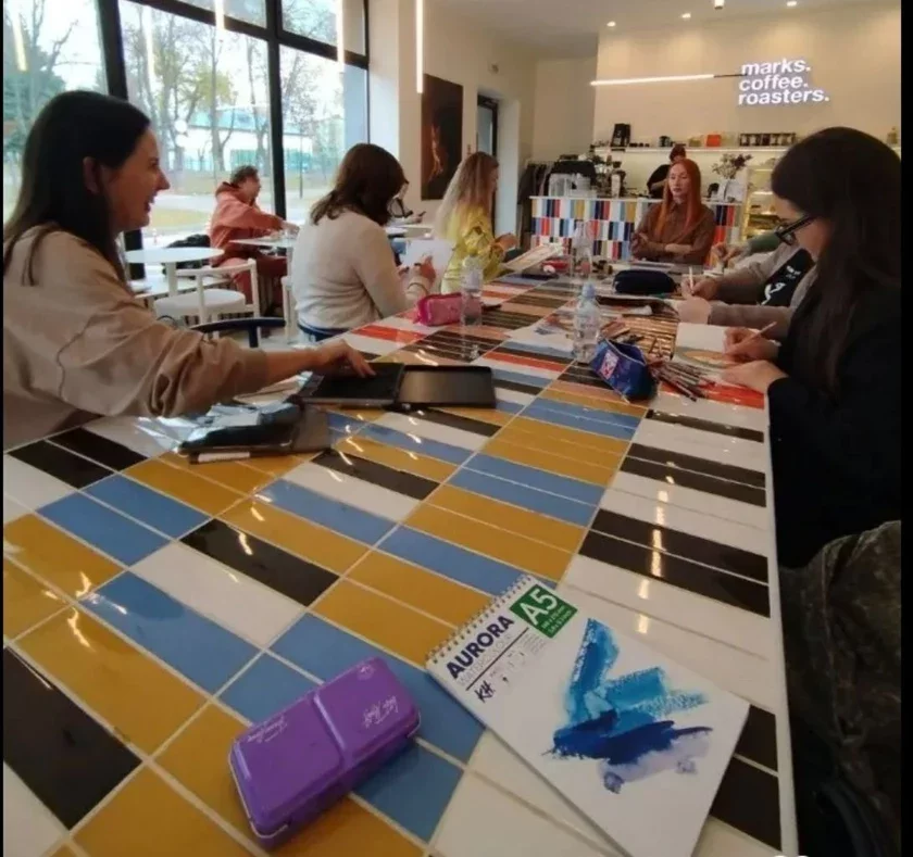 Мастачка Таццяна Мулярчык падзялілася сваім няўдалым досведам малявання ў моднай кавярні «Маркс» на Залатой Горцы — там можна не толькі выпіць каву, але і набыць кнігі.