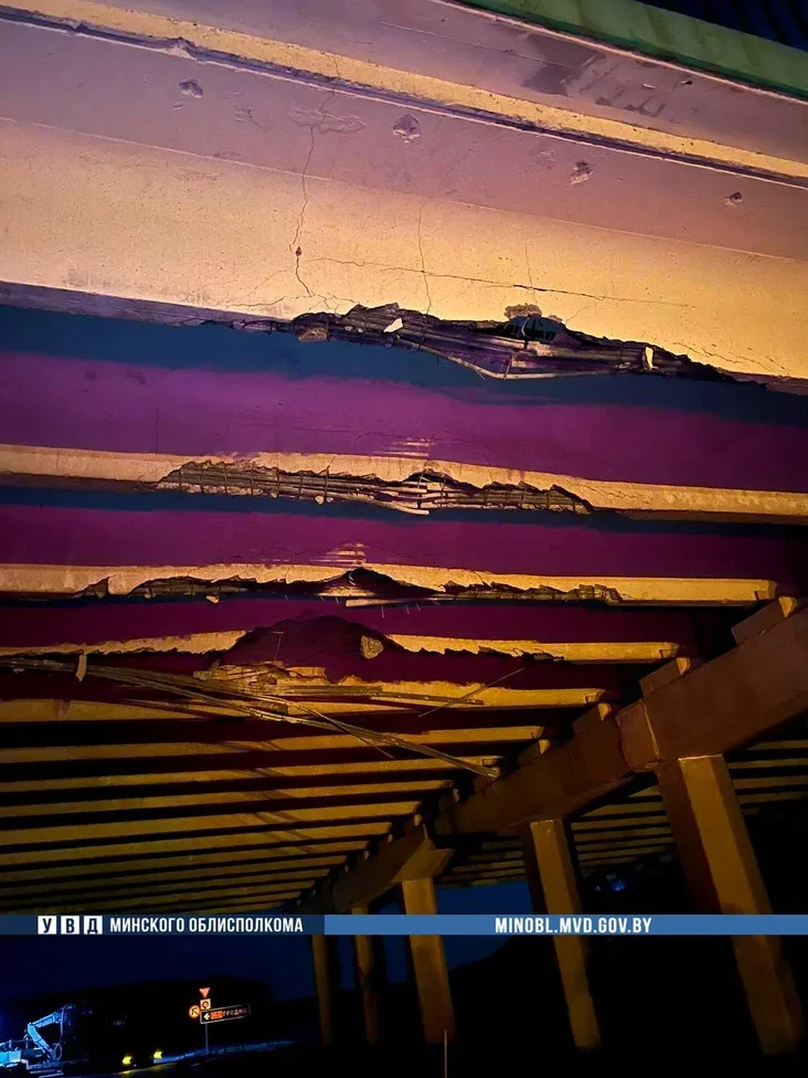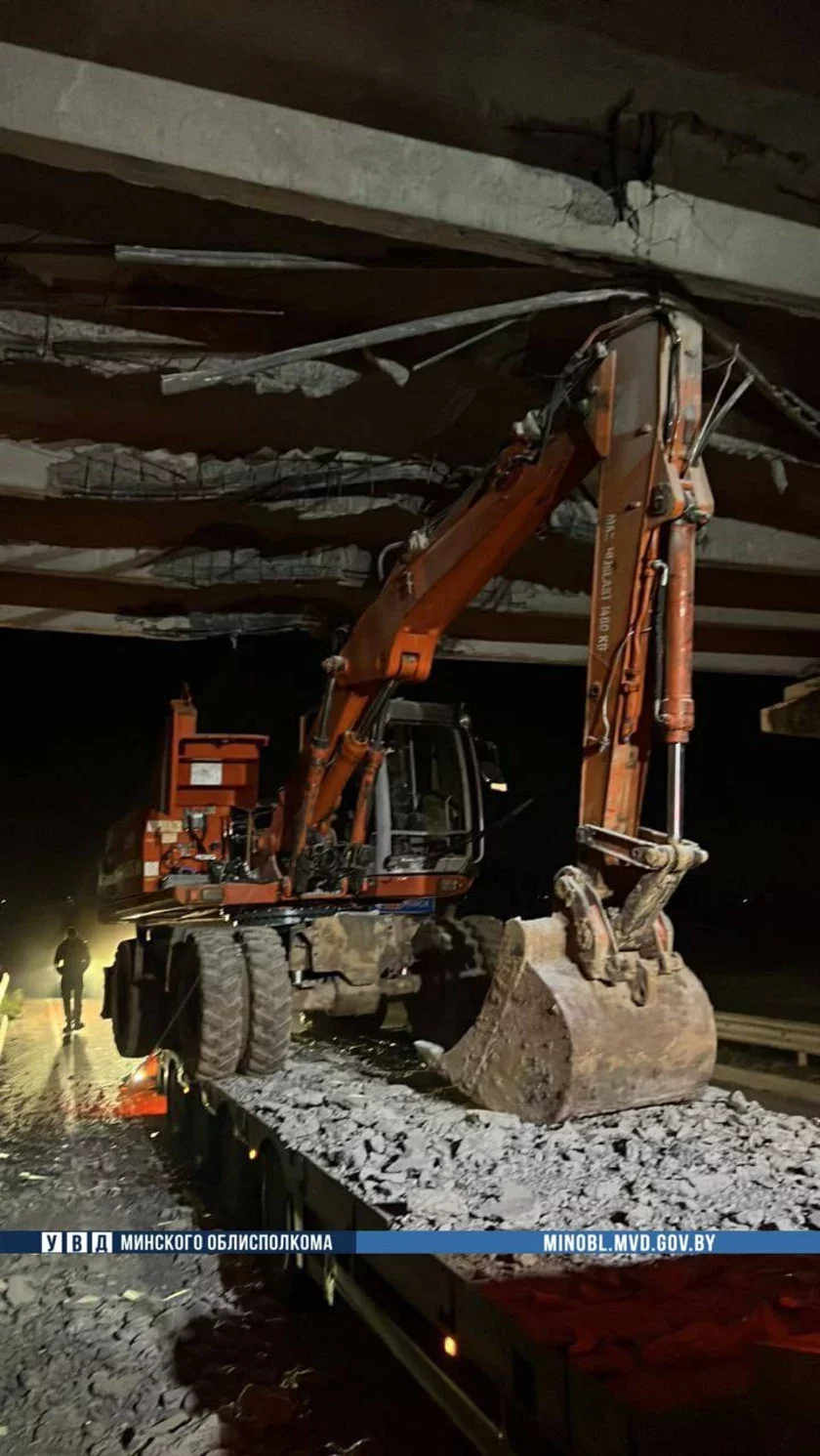 Кіроўца аўтапоезда Volvo і паўпрычэпа пры перавозцы экскаватара не ўлічыў габарыты транспарту і пашкодзіў пяць бэлек пралётнага злучэння.