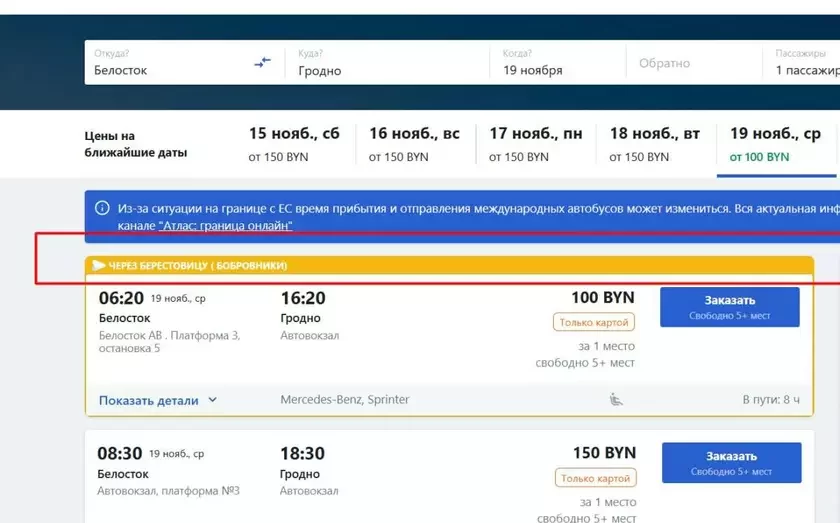 З 17 лістапада перавозчык ТАА «Зет» запускае рэгулярныя рэйсы па маршруце Гродна — Беласток праз пункт пропуску Бераставіца (Баброўнікі).