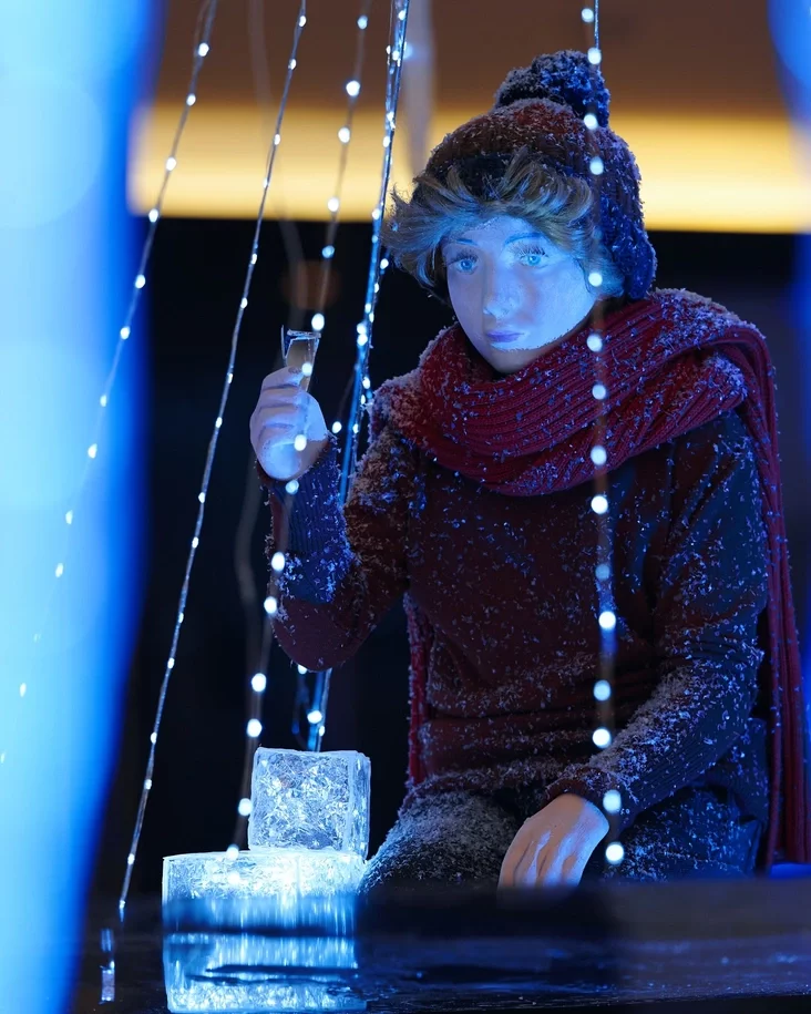 Інсталяцыя мае мноства дэталяў, якія нагадваюць пра сюжэт казкі. Проста перад тварам гіганцкай каралевы, на тонкай празрыстай ільдзіне, сядзіць маленькі Кай.