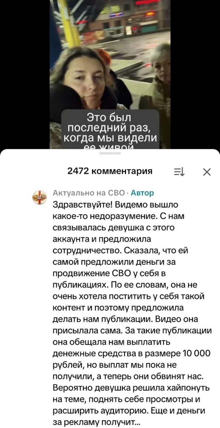 Дзяўчына спрабавала пагаварыць з адміністратарамі тыкток-акаўнта «Актуально на СВО» і дамагчыся выдалення фэйкавага відэа, але там яе проста забанілі.