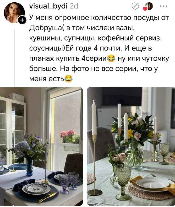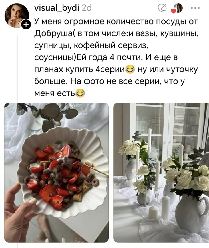 Але меркаванні каментатараў пад допісам Наталлі падзяліліся. Нехта хваліўся сваім посудам ад Добрушскага фарфоравага завода. Адна з жанчын нават прызналася, што ўвесь посуд у доме замяніла на добрушскі.