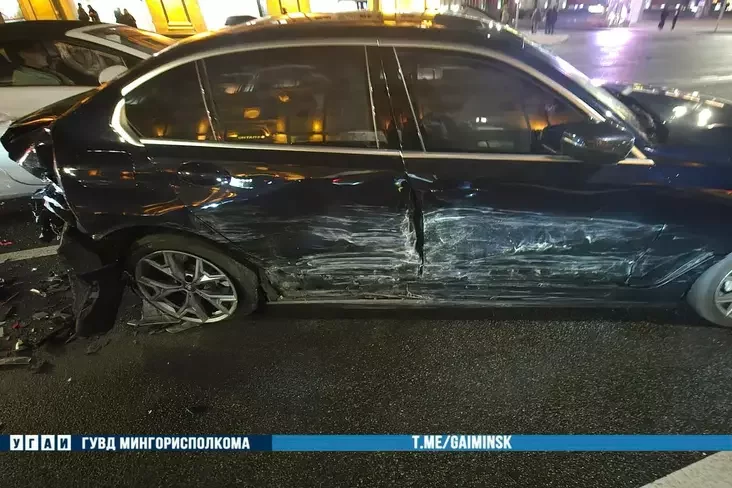 На Кастрычніцкай плошчы 25‑гадовы хлопец на BMW вырашыў праехаць на чырвонае — пяць пашкоджаных аўто