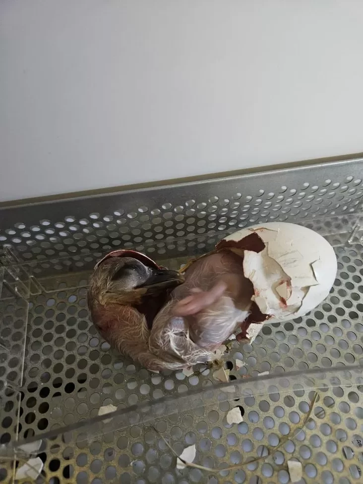 Яйкі, якія засталіся ў гняздзе, падмянілі на курыныя. Самец сумленна выседжваў іх некалькі дзён, але на чацвёртыя суткі інстынкт узяў верх і птушка паляцела здабываць корм.