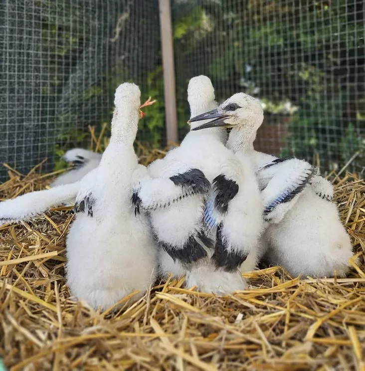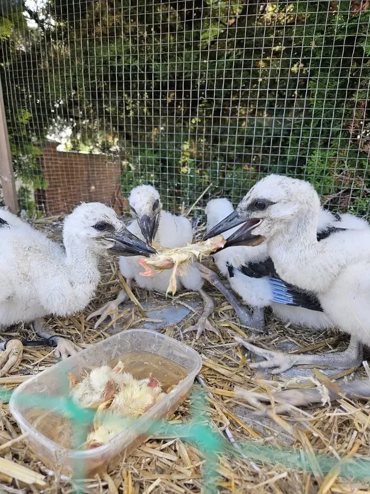 У «Доме Брэсцкага Бусла» выкінутых птушанят гадуюць у спецыяльных вальерах з дзікімі суродзічамі, каб яны мінімальна кантактавалі з чалавекам.