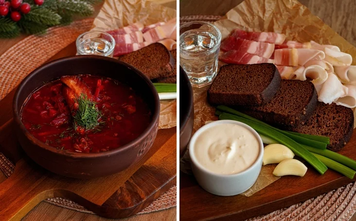 У меню рэстарана прапануецца сумесь класічных беларускіх страў — такіх як дранікі, мачанка і калдуны — і савецкай ды еўрапейскай кухні: аліўе, селядзец пад шубай і запечаныя слімакі.