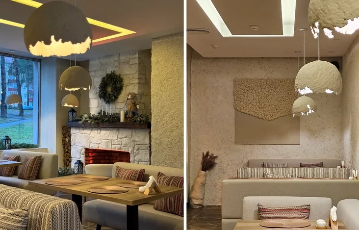 Што тычыцца афармлення, то стваральнікі паспрабавалі зрабіць стаўку на ўтульнасць і казачнасць. Інтэр'ер стылізаваны пад сельскую хату ці нават «гняздо»: фактурныя ляпныя сцены, вялікія пухнатыя свяцільні ручной працы, маленькія лямпы ў выглядзе палавінак яек і штучны камін.